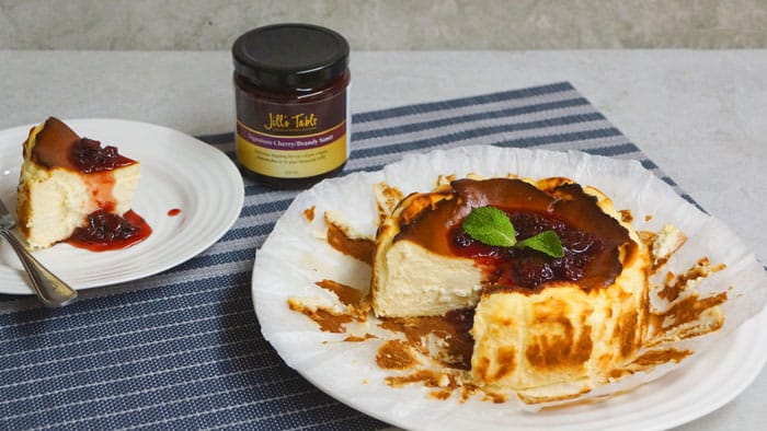 Before serving, spoon the cherry brandy sauce over top of the cheesecake. Serve chilled.